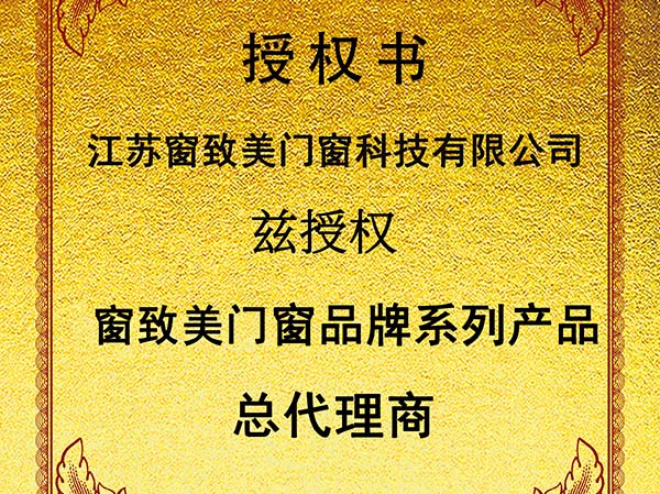 江蘇窗致美門窗品牌授權書